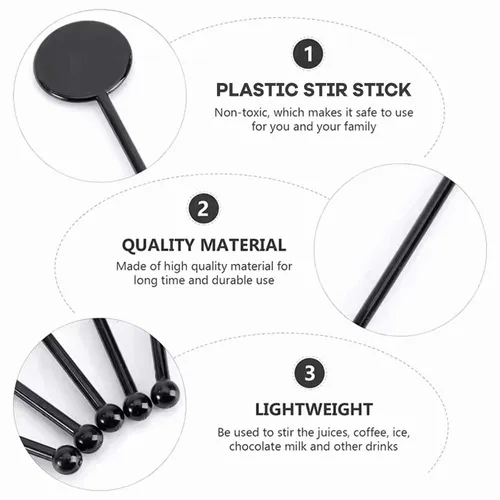 Crafted from high-quality plastic, our stir sticks are designed to come into direct contact with food and withstand both hot and cold beverages. They are an essential tool for any bar, cafe, or home kitchen, ensuring you can mix drinks with ease and style.